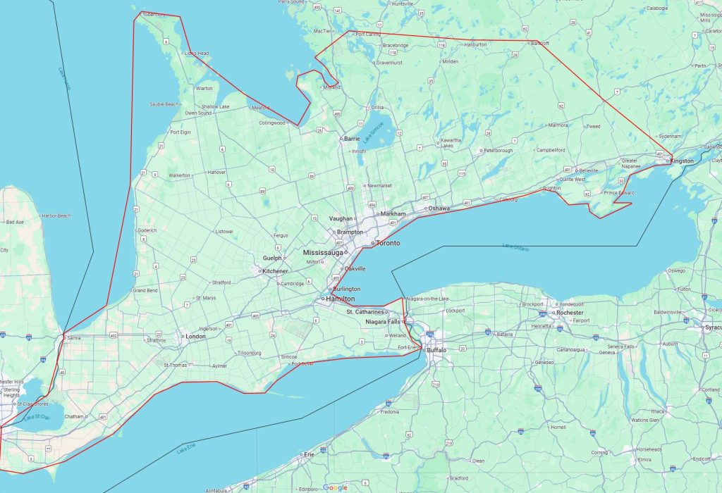 From local construction sites to long-term rentals in Kingston, we support crews across Southwestern Ontario. See our service area outlined in red on the map.